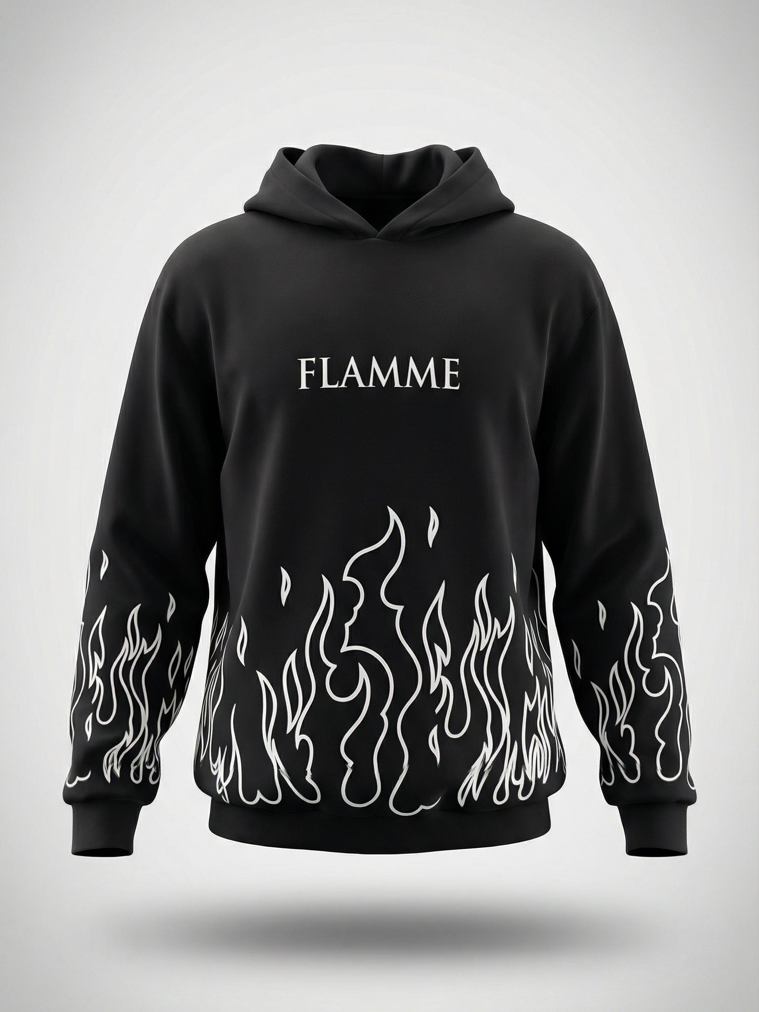 Introducing the Flamme Edition — where subtle heat meets sophisticated streetwear. Designed with precision and crafted from a premium fleece-cotton blend, this sweatshirt combines comfort, durability, and modern flair. The design features the word “Flamme” in bold typography with an artistic fire-inspired motif beneath — a visual that radiates energy without needing flames.